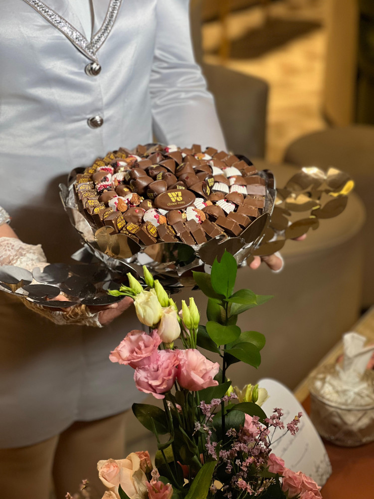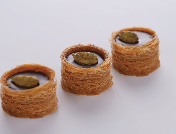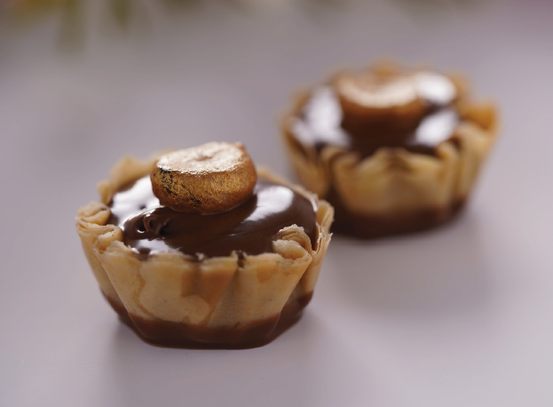 كريب المقرمش بحشوه الكراميل والشوكولا مع خيار اضافه لوقو خاص باسم العميل